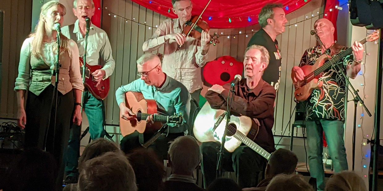 Our double-header 'Extra' concert brought the biggest and best audience since the Poppy Folk Club emerged into the light from the restrictions of the lock-down years; partly thanks to both bands bringing in plenty of their own followers. In musical style, this was a bit of a departure from the club's regular concerts, but it worked very well, with Plumhall and the Phil Langran Band playing for almost an hour each and grabbing the audience's attention from the start.