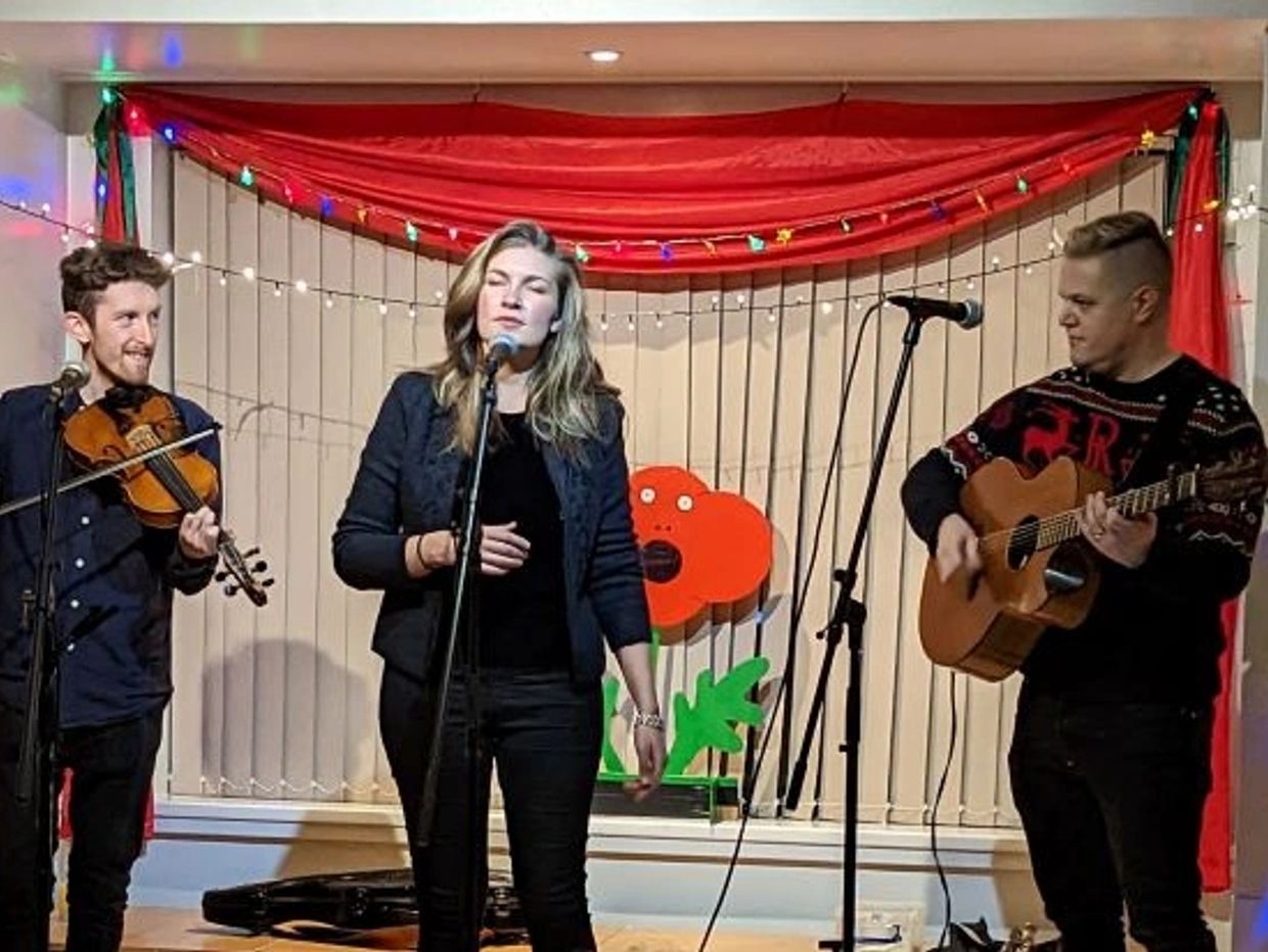 We always try to bring you something a bit special and festive for our December concerts. This year fine trio 'The Wilderness Yet' brought us songs from their latest CD - 'Turn The Year Round', with material that references the changing seasons, the environment, and winter landscapes. There were a few 'traditional' carols of course, but these (such as the Holly and the Ivy) had been neatly reworked to fit the theme. It was a refreshing change to the normal Christmas fayre and I would have gladly heard more (they interspersed the seasonal songs with other excellent pieces from their back-catalogue). The band are excellent musicians; past finalist of the BBC Young Folk Awards. Rosie Hodgson superbly takes on the great majority of the lead singing role. Rowan Piggott is well respected for his fiddle playing but also adds vocal harmonies, while guitarist and flautist Philippe Barnes, despite only recently being persuaded to start singing, adds a beautifully smooth bass voice to several songs. All are busy musicians working in a number of collaborations - Philippe, for example, is sought-after as a session musician on TV and movie soundtracks - and all contributed songs or tunes of their own composition to the concert. There was a good variety of songs, many with 'join-in' choruses, and there were a couple of excellent tune sets and some lovely unaccompanied harmony singing. Favourite songs for me were Barry Temple's 'Old Jackie Frost' and the traditional 'Drive the Cold Winter Away', but the whole concert was full of gems and the capacity audience was full of praise.