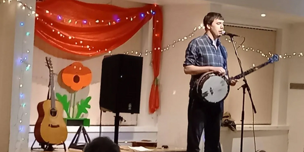 Having seen Dan perform in various formats before (including solo at the club back in 2014), it was hard to imagine that he could actually surpass expectations, but that is certainly how he left the audience feeling on Sunday. We got Dan's trademark instrumental virtuosity, versatility and variety in spades. As well as banjo and guitar, he introduced his newest instrument, a banjola. This is strung and played like a 5-string banjo but tuned like a mandola, so has a beautiful mellow tone. Magic. And as for musical variety, we got tastes of different cultures, traditional and self-penned tunes and songs, and jazz guitar, in the mix. Highlights of the evening were the Indian-influenced Whiplash Reel, with banjo sounding remarkably sitar-like, an astonishing "slap guitar" rendition of Paul Simon's song "You can call me Al", and remarkable jazz guitar in "It's a sin to tell a lie", dedicated to someone called Boris. In quieter moments the banjola came into its own in the traditional Irish song "The Suilin", and Dan talked movingly about his work in care homes and sang a song he had written for and about a resident who had been a professional singer and performer in his earlier life. There was ample opportunity for audience participation, particularly in the encore "Sleep with One Eye Open".