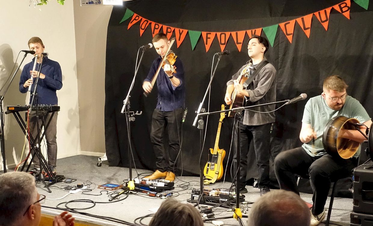 On a night when the Euros game might have kept quite a few at home (or downstairs in the pub, where alternating cheers and jeers were coming from) we had another full house upstairs in the Poppy Folk Club where we were superbly entertained by our June concert guests, Gnoss.